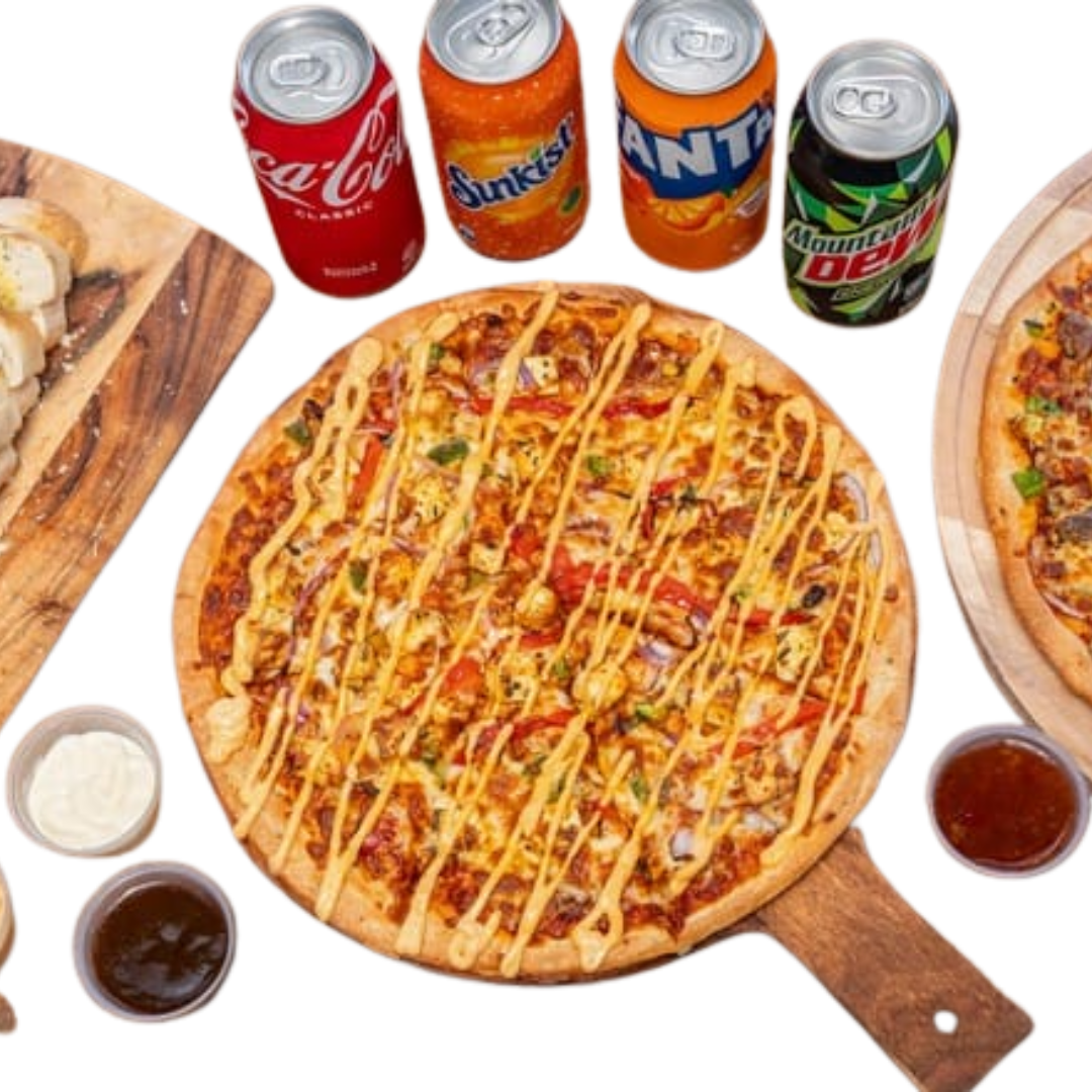 1 x Large Pizza ; 1 x Garlic bread; 1×1.25L Drink
